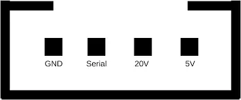 Section titled “Connecting your stove”Most MicroNova based pellet stoves have a serial output. In most cases this output has 4 pins: GND, 5v, 20V and DATA.